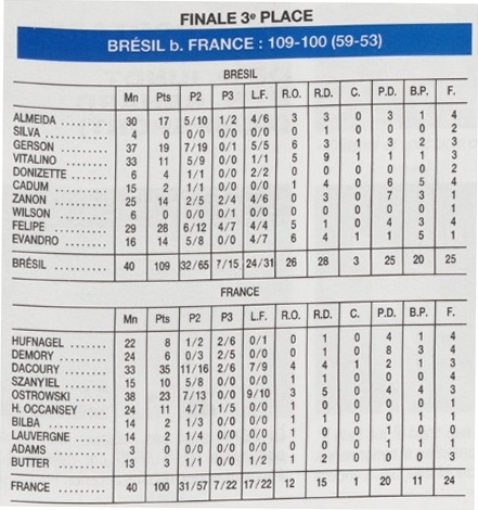 Après une défaite face à l’équipe “Américains de France”, les Bleus affrontent la meilleure équipe Sud-Américaine, qui a fini cinquième aux J.O. de Séoul en 1988 et quatrième au championnat du monde 1986 en Espagne. En l’absence de sa star Oscar Schmidt, qui s’est vu refuser sa venue à Paris par son club de Caserte, la sélection brésilienne s’adapte et fait très mal à l’intérieur.